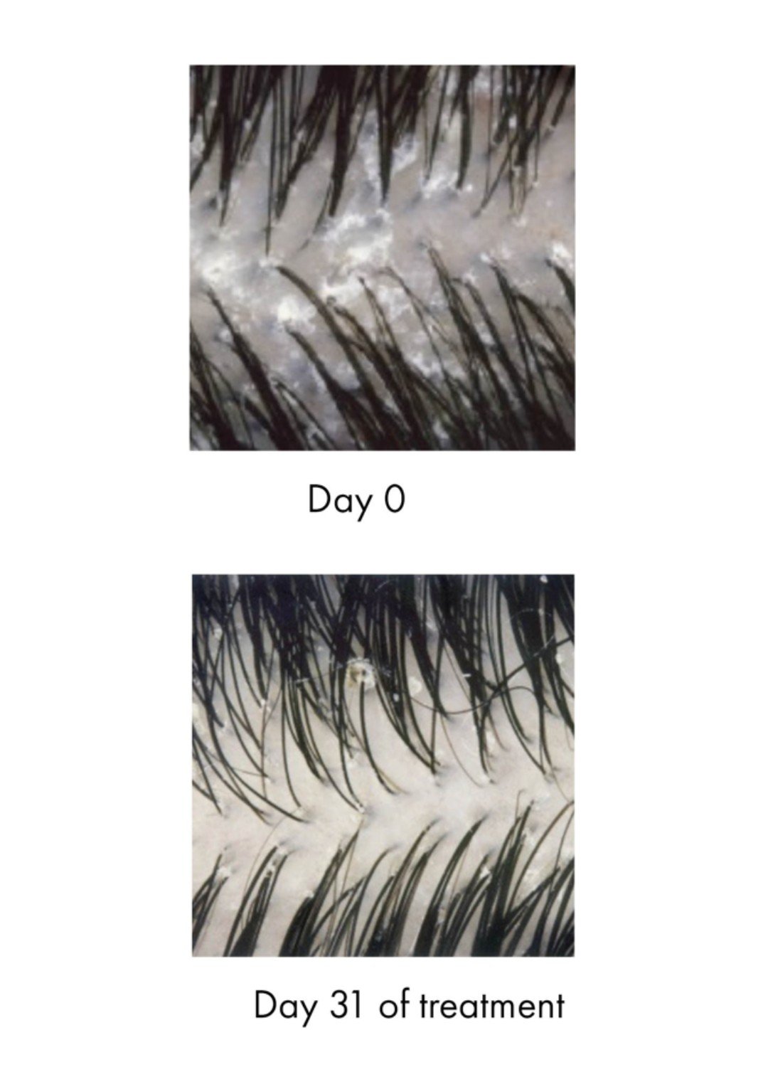 *Clinical study on 45 subjects with 3 applications / week, images corresponding to equivalent adherent dandruff scorage result.