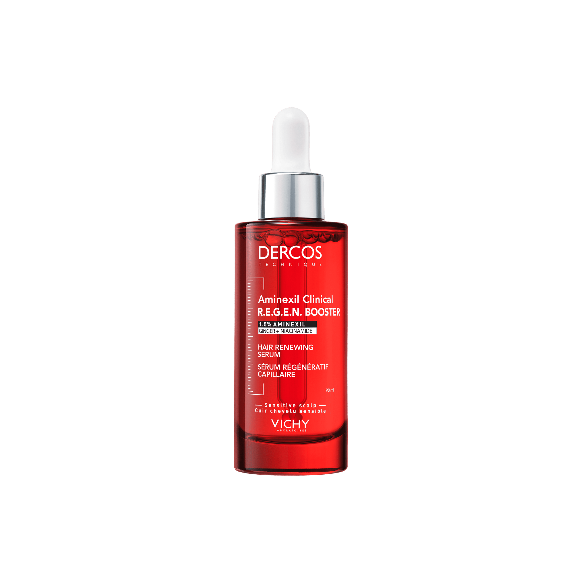Discover DERCOS first hair renewing serum powered with 1.5% Aminexil and Ginger + Niacinamide for a dual action : Treats hair loss & Stimulates hair growth*